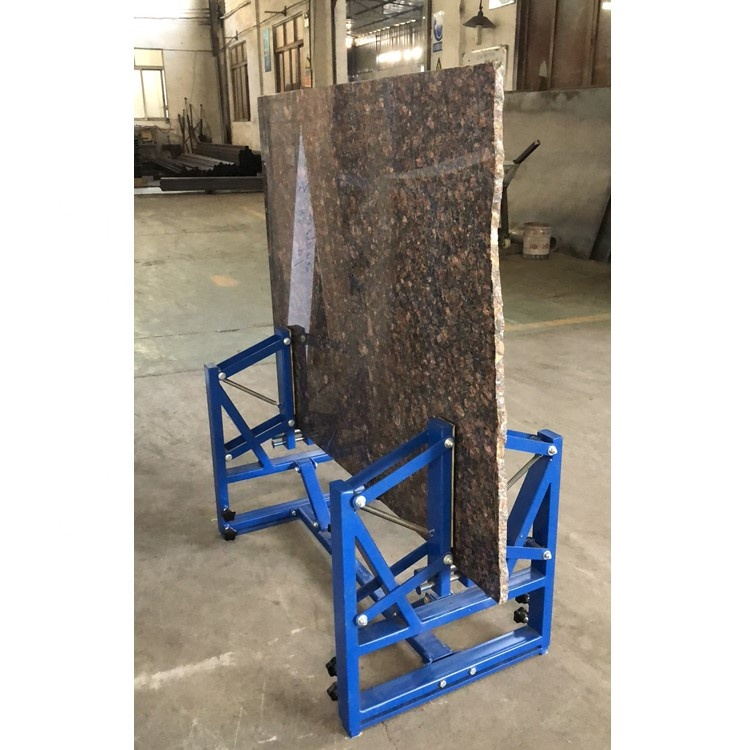 Granite standing vertically on edge is the most comfortable way for a polisher to hand polish granite edges.Automatic locking jaws, covered with rubber pads, grip the plates quickly and firmly.